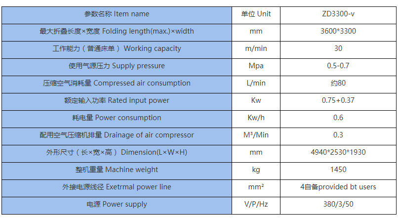一、工業折疊機主要技術參數(Main Technical specifications)
